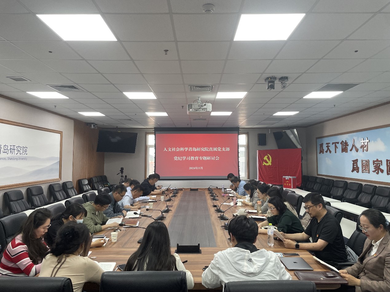 5月16日,人文社科青岛研究院直属党支部召开党员大会暨党纪学习教育专题学习会议,选举研究院出席中共山东大学第十五次党员代表大会的正式代表,并组织全体党员开展党纪学习教育专题学习。会议由研究院直属党支部书记张荣林主持,研究院全体党员参加。