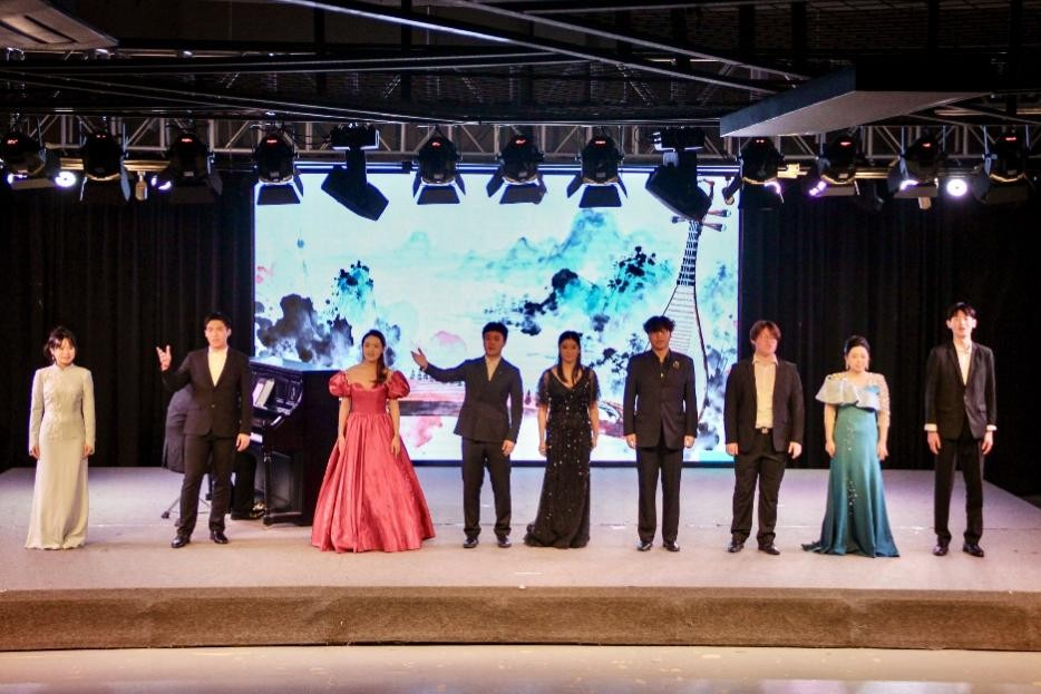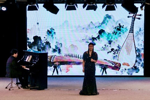 中国艺术歌曲专场音乐会共演唱15首经典诗词艺术歌曲。音乐会上,《春花秋月何时了》的婉转愁思、《定风波》的旷达意气、《念奴娇·赤壁怀古》的豪情壮阔等一一呈现。从《凤求凰》的浪漫缱绻到《声声慢》的凄清孤寂,从《青玉案元夕》的朦胧怅惘到《江城子》的深沉悲怆,扎实的唱功与细腻的钢琴伴奏倾情诠释着多样情怀与气魄。终曲《春风十万里》大合唱时,诗词的文字意境与旋律的艺术张力相融相生,现场观众拍手和鸣、气氛热烈,营造出“诗乐同频”的沉浸氛围。