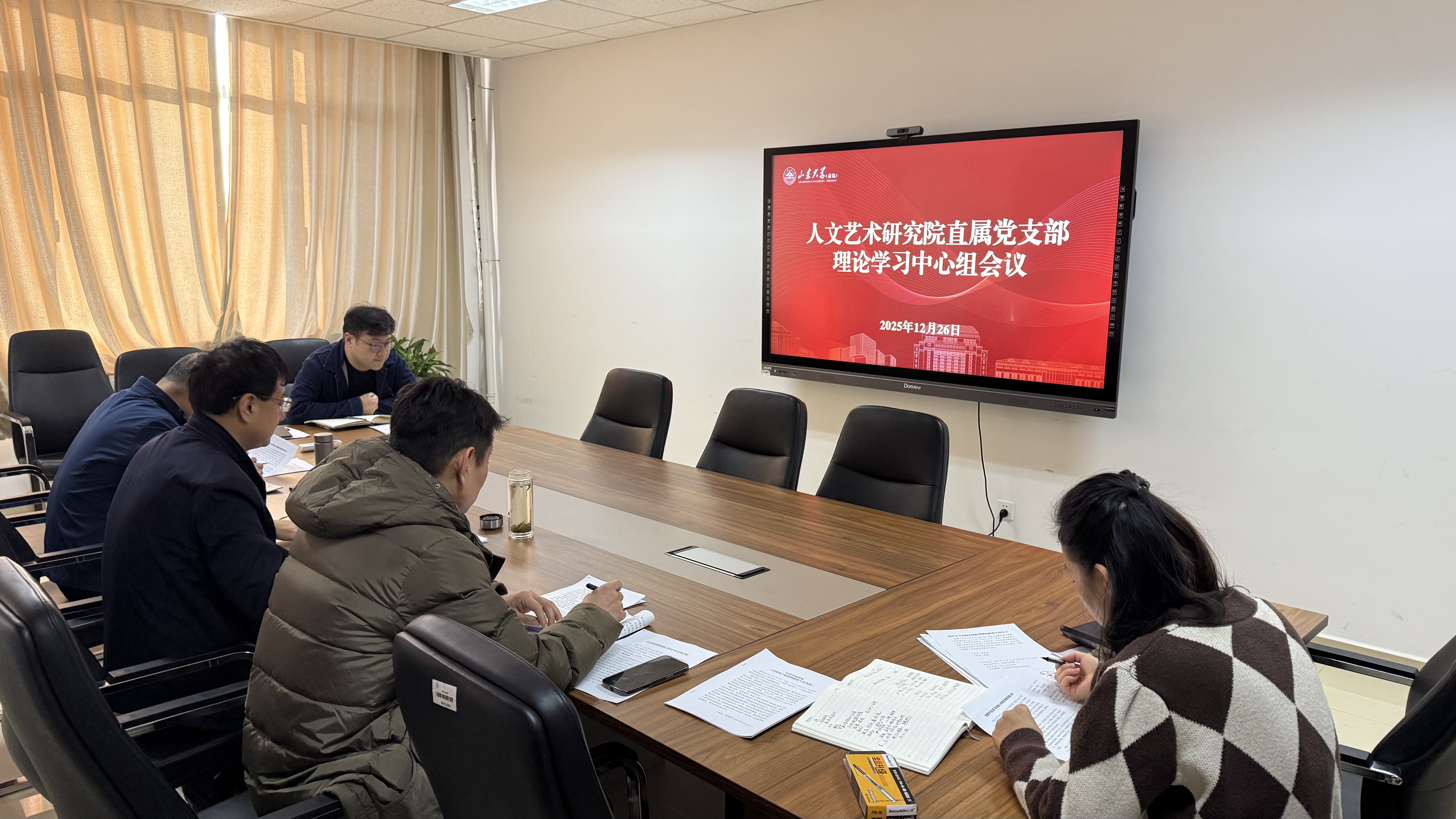 12月26日,人文艺术研究院理论学习中心组开展集体学习。山东大学校长助理、青岛校区党工委书记、研究院直属党支部书记邢占军主持会议。